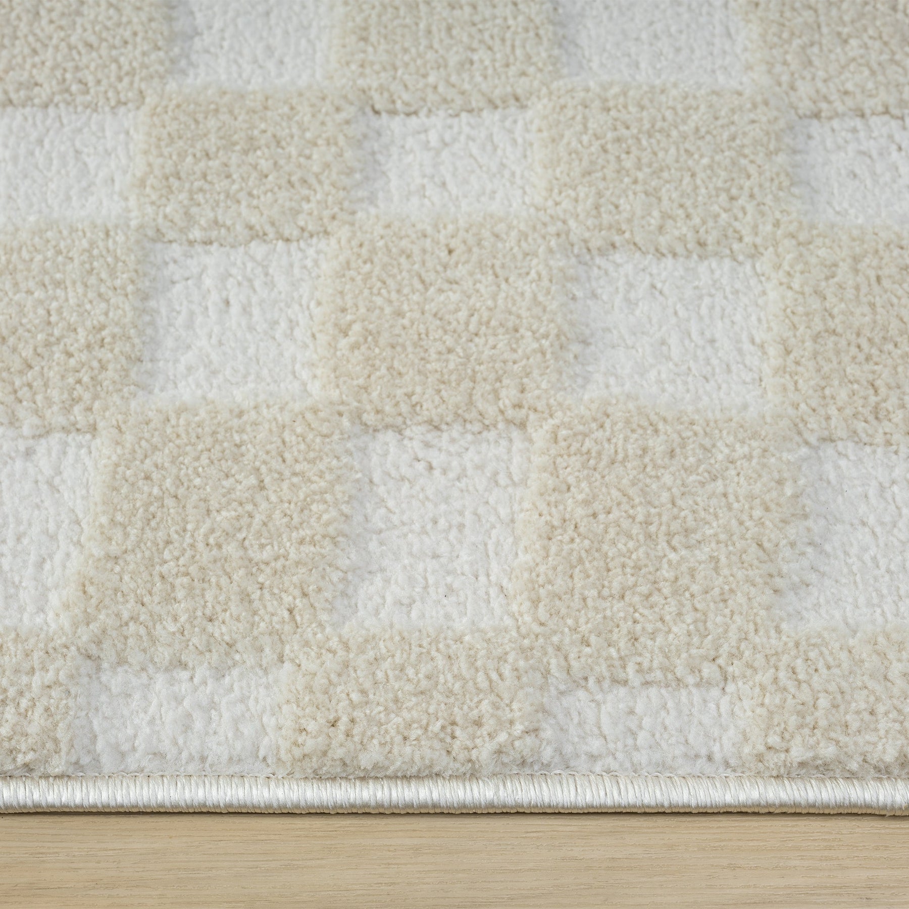 A beautifully balanced rug featuring a soft woven check design in a natural linen tone. Its gentle texture and neutral palette make it a versatile choice for modern family homes.