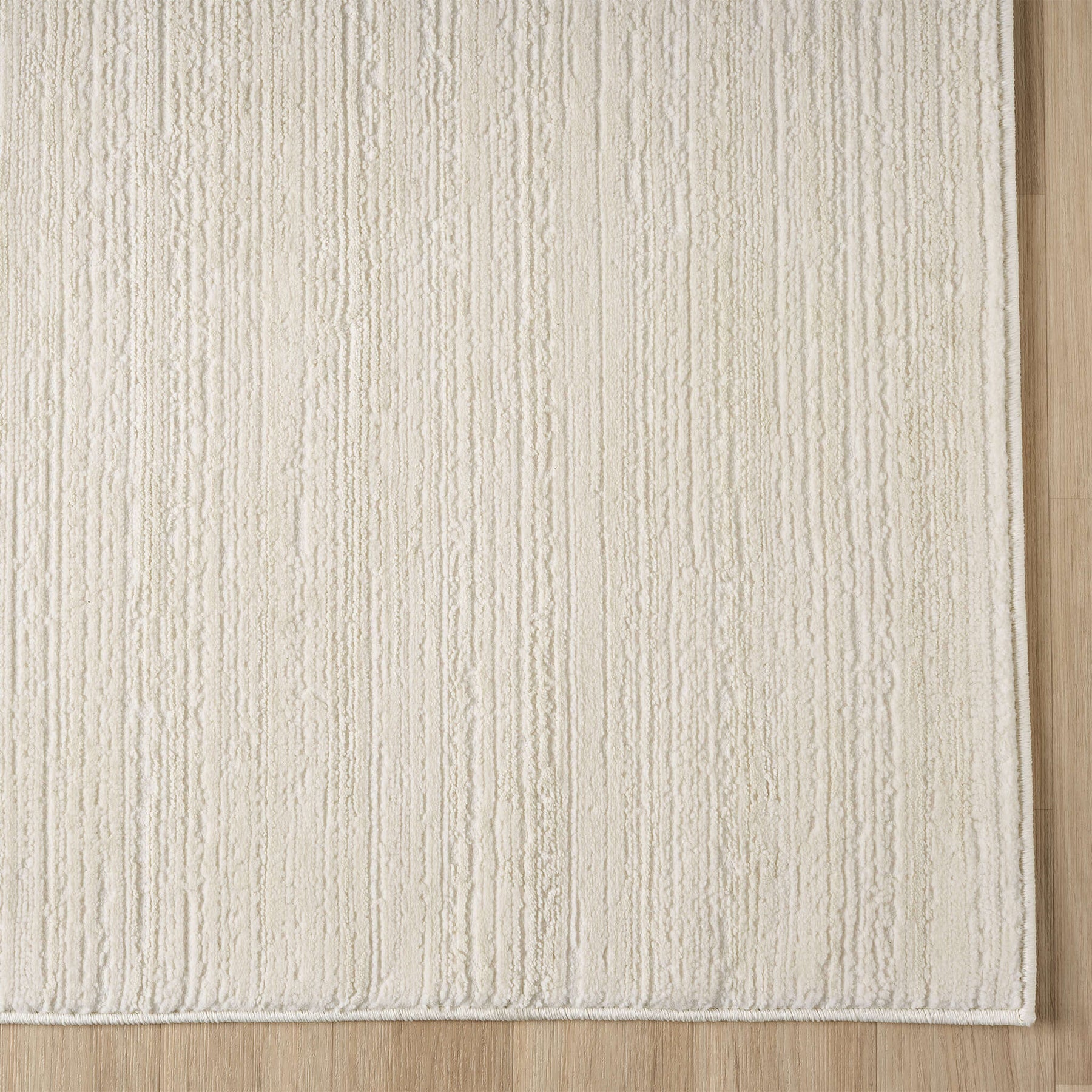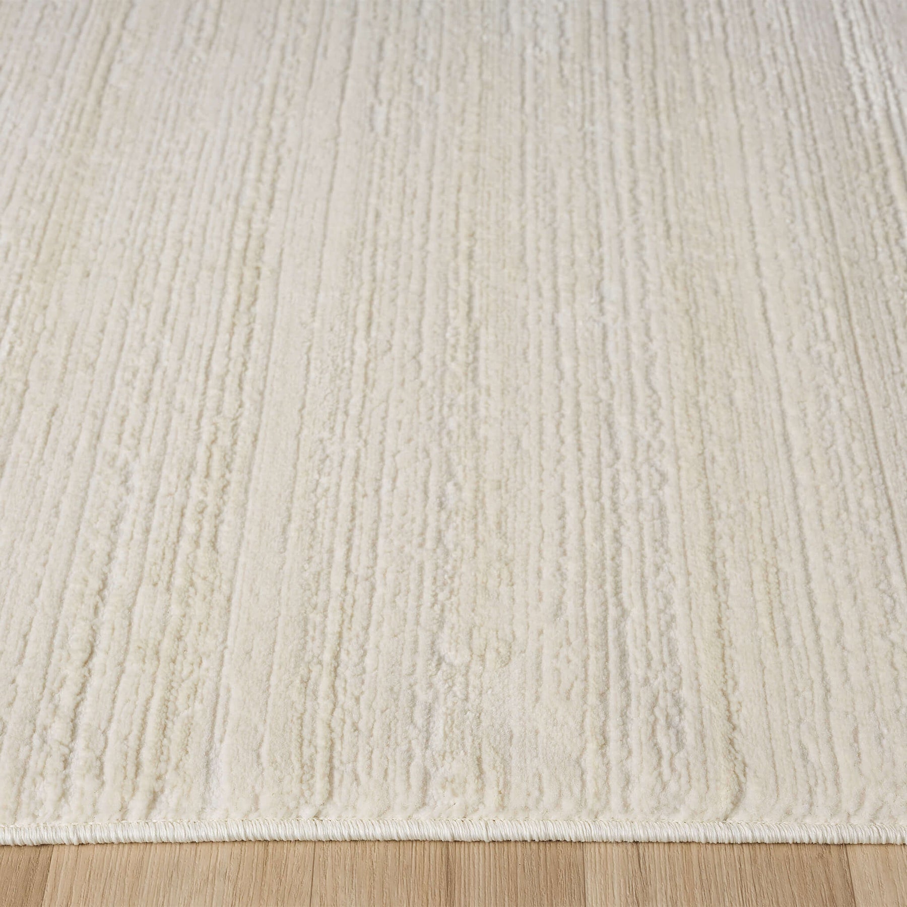 A soft cream rug with a beautifully distressed border that adds gentle depth and character to bright, modern interiors.