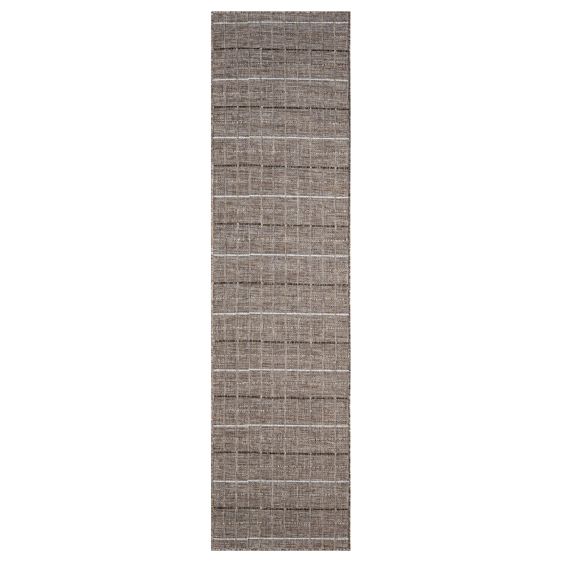 A natural-toned rug with a clean linear grid pattern, offering a modern yet organic feel suited to minimalist interiors.